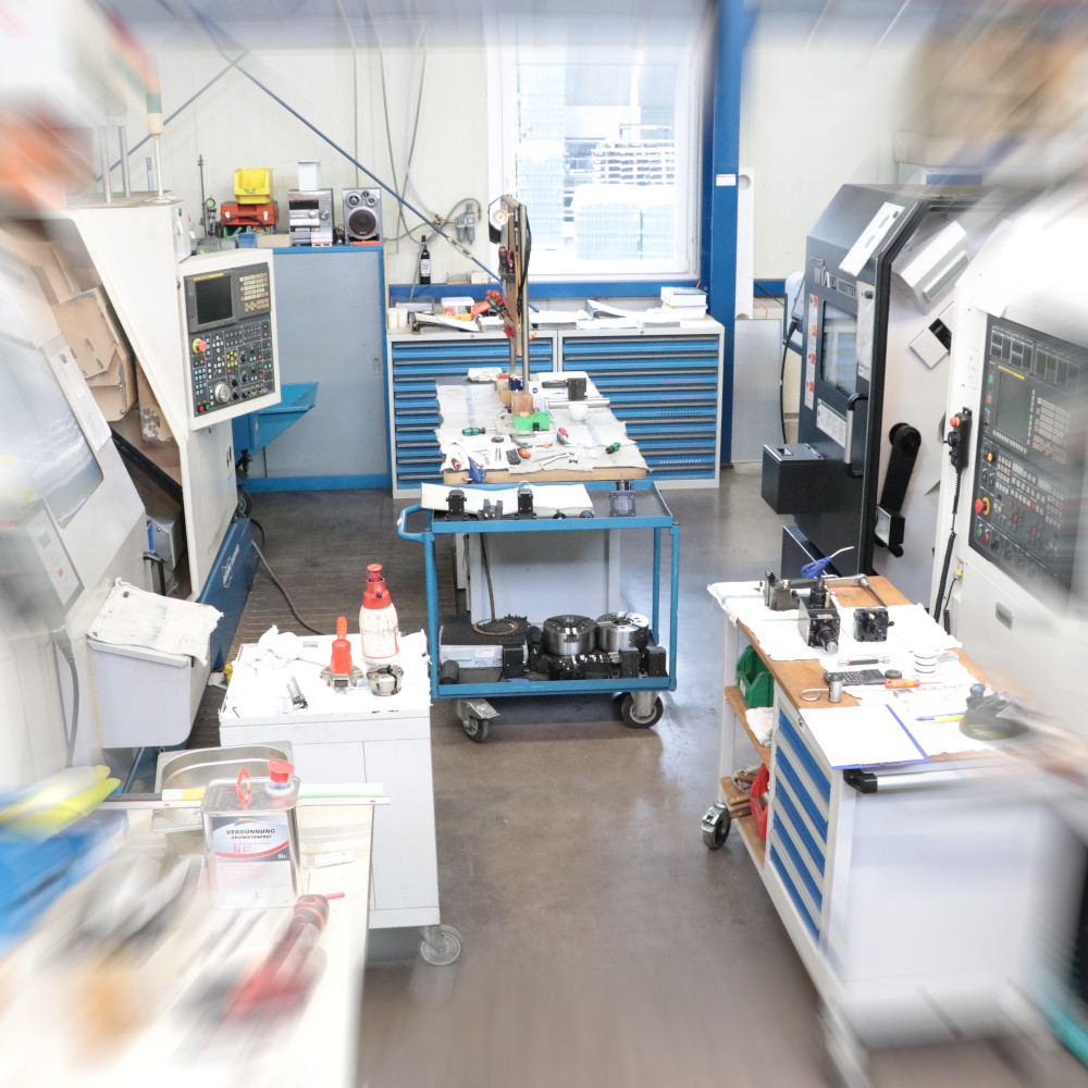 z.B. Doosan-Daewoo Puma TT1800 SY, Hyundai LM1800TTSY, Traub TND 400, Haas VF-5SS, VF-2SS mit zusätzlicher 4. Achse.